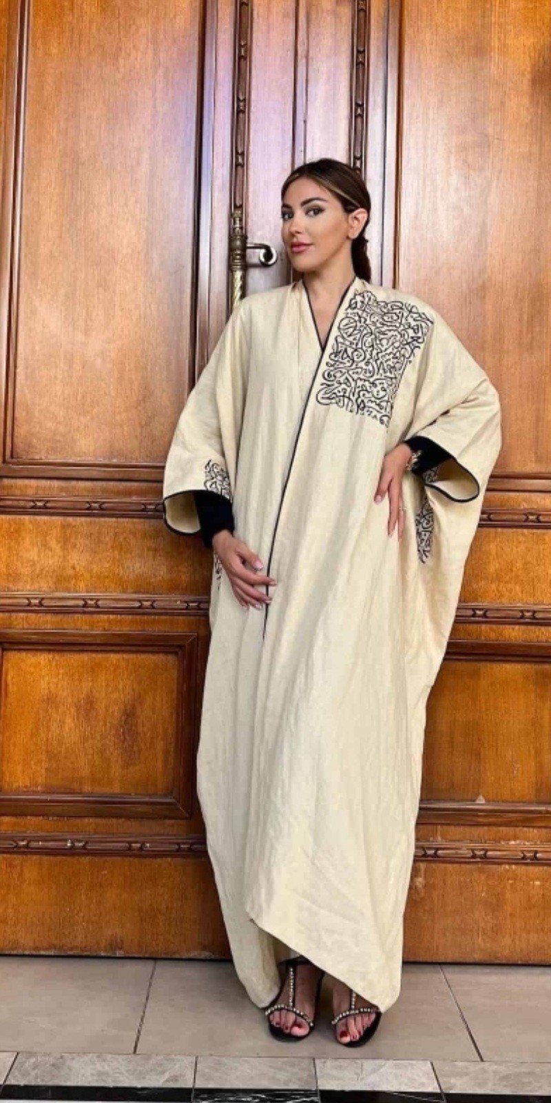 Linen embroidered abaya